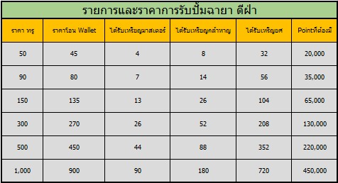 ตรารางราคา การปั้มฉายา ตีฝ่า