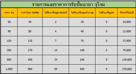 ตรารางราคา การปั้มฉายา ตีฝ่า